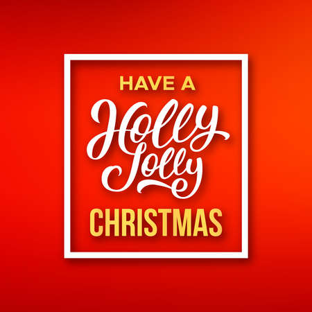 Have a Holly Jolly Christmas phrase in white frame on red background. Vector card design for Xmas season greetings.