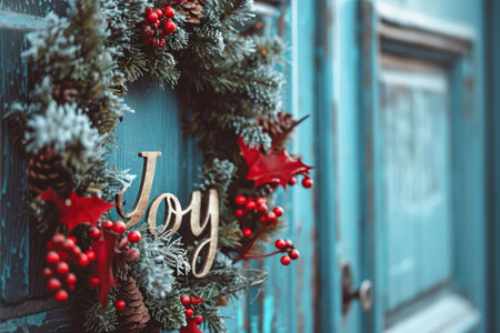 Festive Door Decor: Delightful Joy Adorns Wreath.