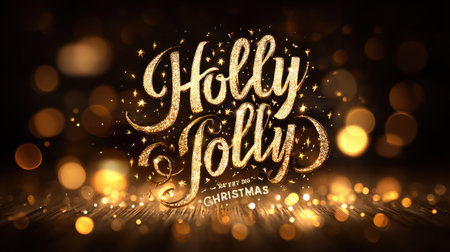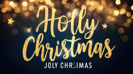 This stunning background features a joyful Holly Christmas design in shimmering gold text, surrounded by vibrant bokeh lights, perfect for festive greetings.