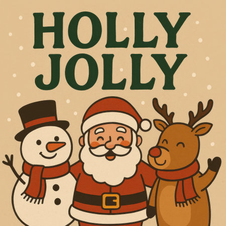 Holly Jolly friends illustration with Santa, snowman and reindeer.
