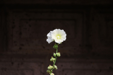 white blooming mallow flower Malva on the background of a concrete wall of an urban house