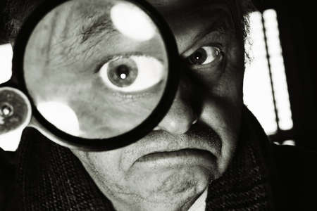 Detective looks evidence through magnifying glass