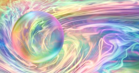 Rainbow Orb and Flowing Rainbow Energy - Transparent bubble with rainbow edges against an ethereal gaseous stream of flowing rainbow colours with space for copy