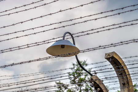 barbed wire to demarcate the concentration camp and an old lamp