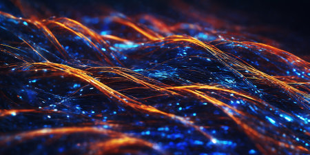 A stunning close-up of illuminated fiber optic threads showcasing vibrant colors and dynamic light patterns, perfect for capturing modern digital aesthetics.
