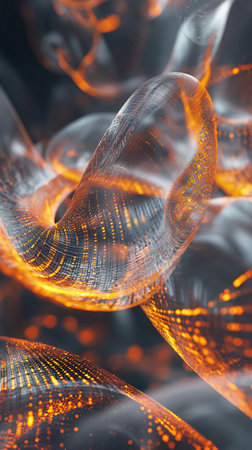 Unique abstract composition featuring glowing strands and a luminous ring in a dark environment