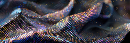 A macro view reveals the intricate details of a futuristic woven material.