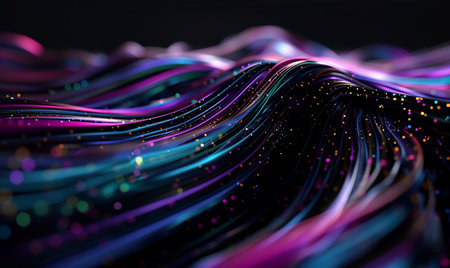 This stunning abstract image features colorful fibers that create a captivating visual experience. The vibrant hues and dynamic movement evoke a sense of energy and creativity, perfect for modern design projects.