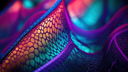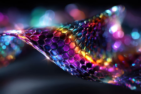 Vivid, shimmering wave of hexagonal patterns creates a mesmerizing visual effect felt in dark surroundings.