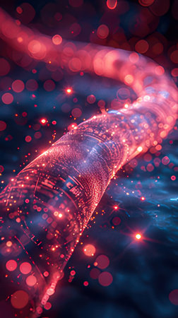 This image showcases a stunning abstract visualization of flowing structures with vibrant colors and intricate patterns, perfect for technology and art themes.