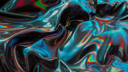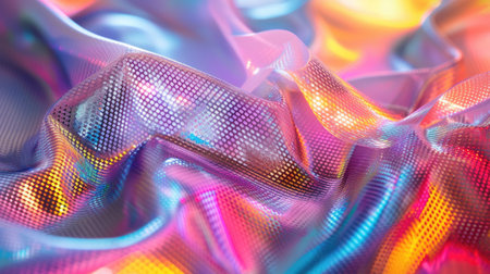 Colorful holographic surface with shimmering iridescent patterns and reflections