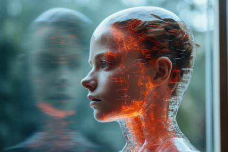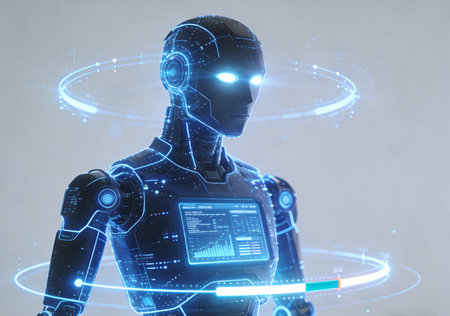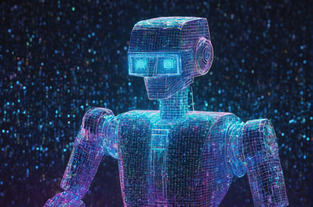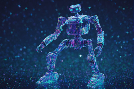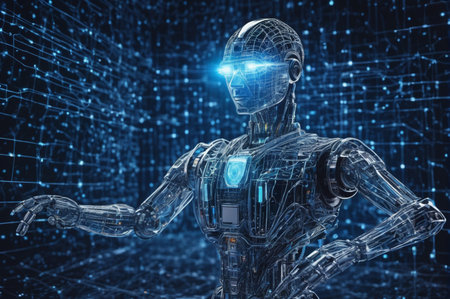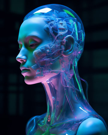 A glowing robot with intricate circuit patterns visible beneath its translucent casing AI generated