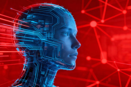 Futuristic robot head silhouette set against a dark backdrop capturing a modern aesthetic