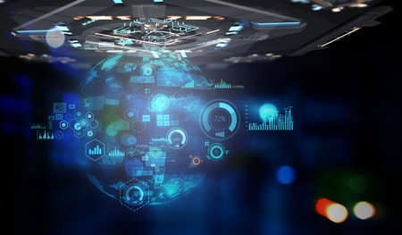 Futuristic user interface on dark background 3D rendering toned image double exposure