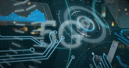 Futuristic hud displaying complex data analysis and processing information