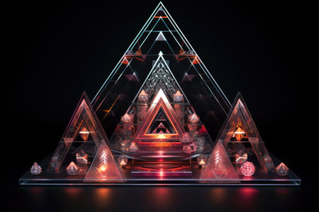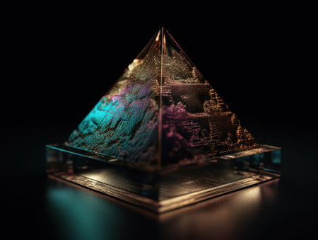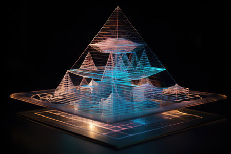A striking threedimensional pyramid structure, beautifully illuminated with advanced data analysis technology, captivates onlookers with its beauty, elegance, and intricate design