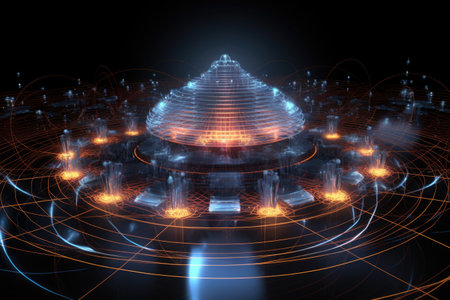 This captivating digital artwork features a dynamic blend of geometric shapes and glowing patterns that embody the essence of modern technology and innovation.