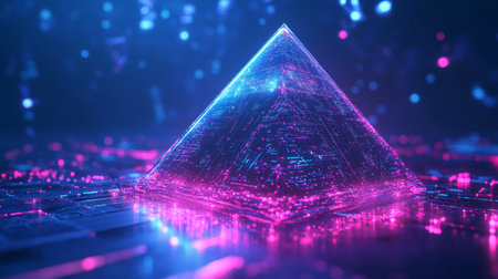 A mesmerizing 3D neon pyramid symbolizes advanced data analysis and technology, making it perfect for digital modeling and visualization in todays fastevolving digital landscape