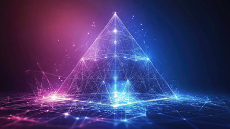 A stunning abstract image showcasing a futuristic pyramid made of glowing lines and dots, representing the intersection of technology and digital innovation.