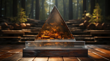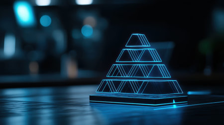A sleek and modern tabletop display featuring a brightly-lit pyramid, adding a touch of contemporary elegance to any space, Holographic Projections of a 3D Printed Structure, AI Generated