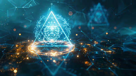 A stunning digital representation of a futuristic pyramid with glowing elements surrounded by a surreal bokeh effect, perfect for technology and abstract themes.