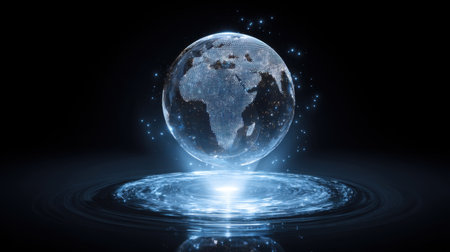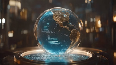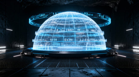 A high-quality futuristic holographic sphere showcases advanced digital technology in a sleek and modern setting, ideal for sci-fi visuals and tech concepts.