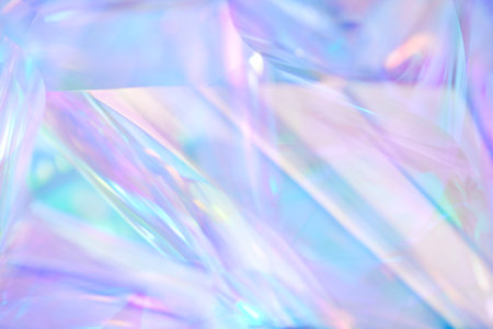 Abstract blurred holographic film background with vibrant rainbow colors and subtle textures. Colorful iridescent surface for modern design projects.