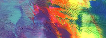 Abstract acrylic and watercolor smear painting. Canvas texture background. Horizontal long banner.