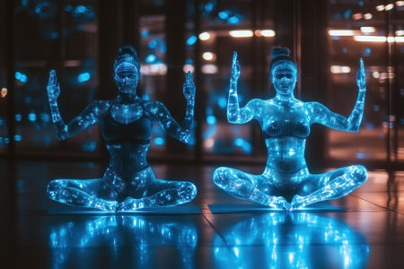 Computer generated image of meditating females