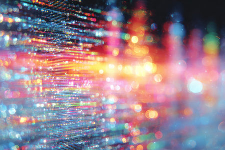 This captivating close-up of illuminated fiber reveals a stunning interplay of colors and shapes, creating a mesmerizing and vibrant abstract visual perfect for artistic projects.