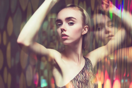 Futuristic female model under neon light