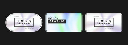 Holographic stickers. Hologram labels shapes. Holographic textured stickers for preview tags, labels. Sticker for design mockups. Vector