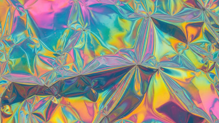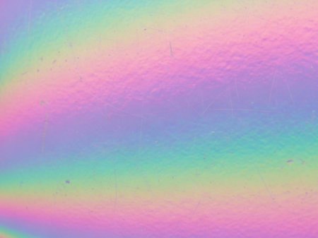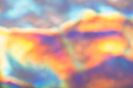 Abstract blurred holographic film background with vibrant rainbow colors and subtle textures. Colorful iridescent surface for modern design projects.