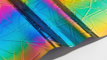 Colorful holographic surface with shimmering iridescent patterns and reflections