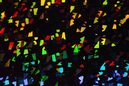 Festive cheerful abstract image texture of holographic foil ribbon in candy colors with sparkling light reflections