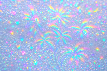 Holographic rainbow light burst on glittery surface with sparkling bokeh effect. concept of iridescent shine, abstract background, vibrant design.