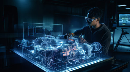 Engineer developing innovative technology by AI generate.