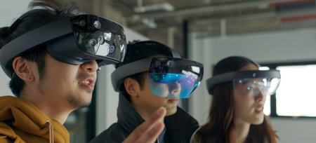 Men playing virtual reality with hololens