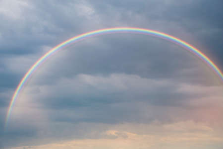 bright colorful wide colorful rainbow after the storm in the gray sky.
