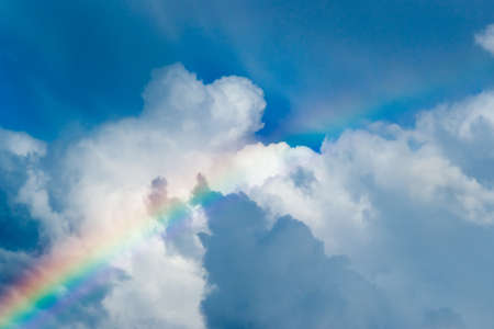 Nature cloudscape with blue sky and white cloud with rainbow , process in vintage style