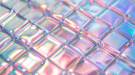 Detailed view of iridescent glass tiles texture background image, ai generated. Spectrum of rainbow colors smooth surface photo backdrop wallpaper realistic. Vibrant visual concept photorealistic