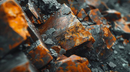 Vivid Orange and Gray Rocks Showcase Natural Mineral Formations in a Geological Exhibit During Afternoon Sunlight. Generative AI