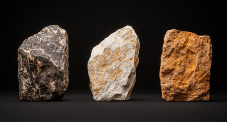 Three different types of stone samples on a dark background