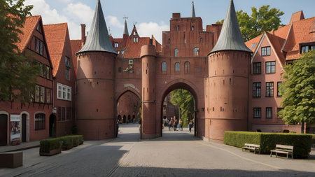The Holsten Gate is a city gate marking off the western boundary of the old center of the Hanseatic city of Lubeck