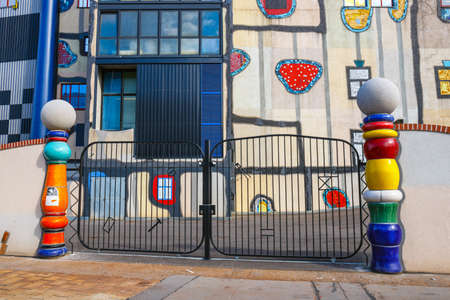 VIENNA, AUSTRIA - October 15, 2016: Detail facade of Spittelau waste incineration in Vienna, built by the famous Austrian architect Friedensreich Hundertwasser