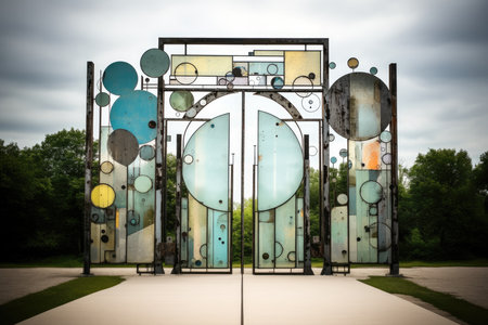 This stunning image showcases an elegant gate adorned with intricate fin details, presenting a visually appealing architectural design that enhances any garden or estate setting.