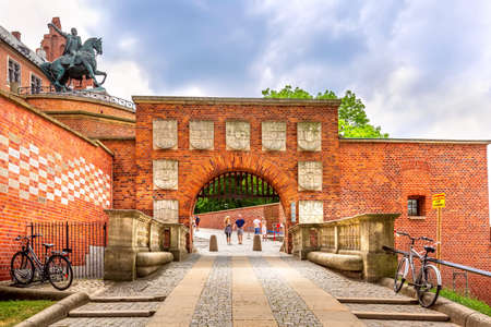 Krakow, Poland -June 18, 2019: Coat of Arms Gate at the Royal Castle on Wawel in Cracow