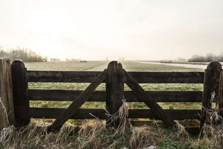 Amish country field agriculture, beautiful brown wooden fence, farm, barn in Lancaster, PA US.