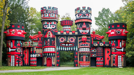 Vibrant Totem Poles in Lush Green Park Traditional Indigenous Art and Culture Expression AI Generative