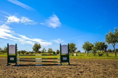 Moscow, RUSSIA - June 16, 2022: Outdoor equestrian parade ground in Ostankino. Place for implement breeding, training, sales of breeding horses and equestrian competitions